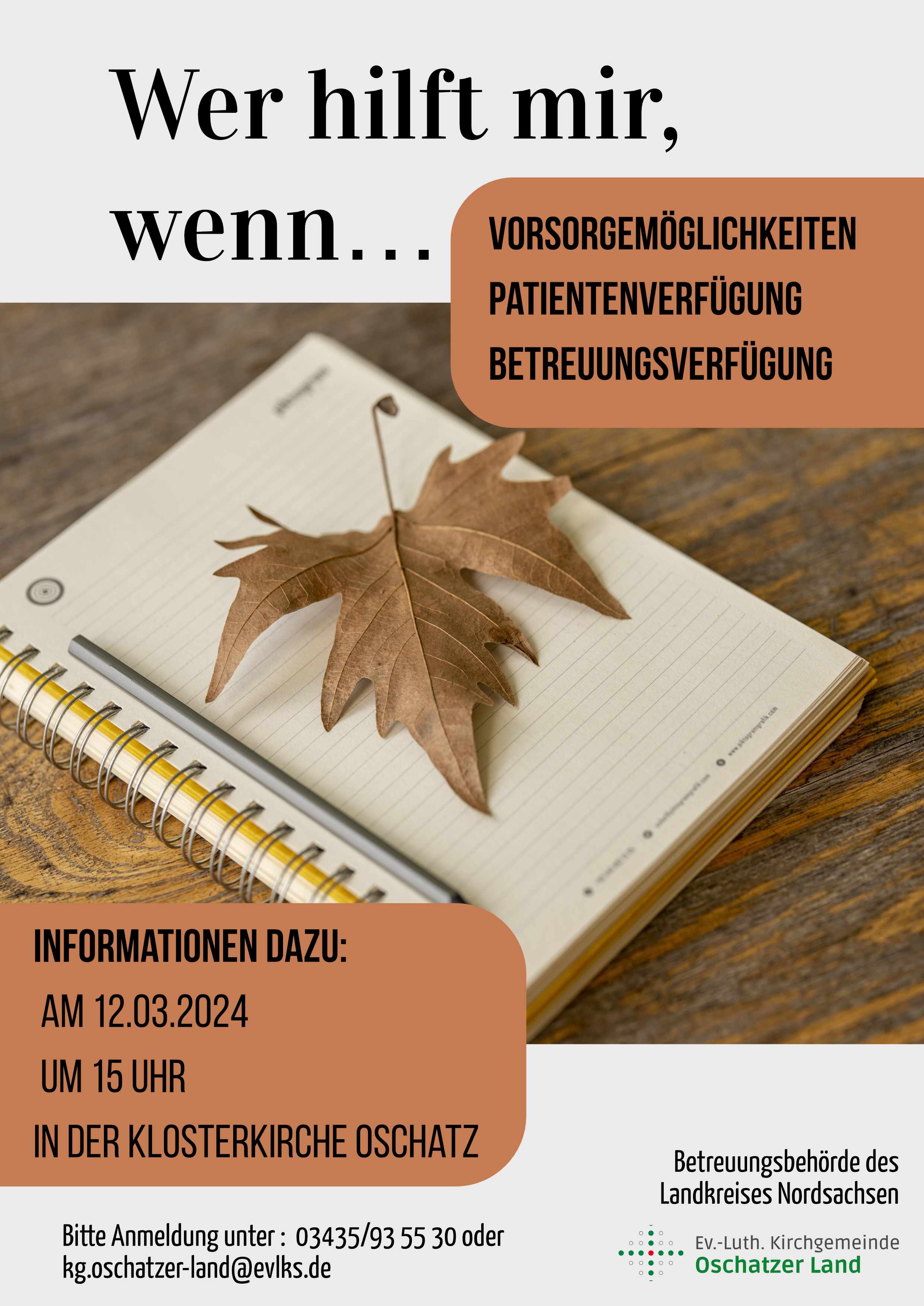 Bitte melden Sie sich zu dieser Informationsveranstaltung an. Hintergrund der Anmeldung ist der, dass wenn Frau Kirschner durch Krankheit beispielsweise an diesem Tag verhindert ist, kann die Veranstaltung leider nicht stattfinden. So könnten wir Sie darüber informieren.
