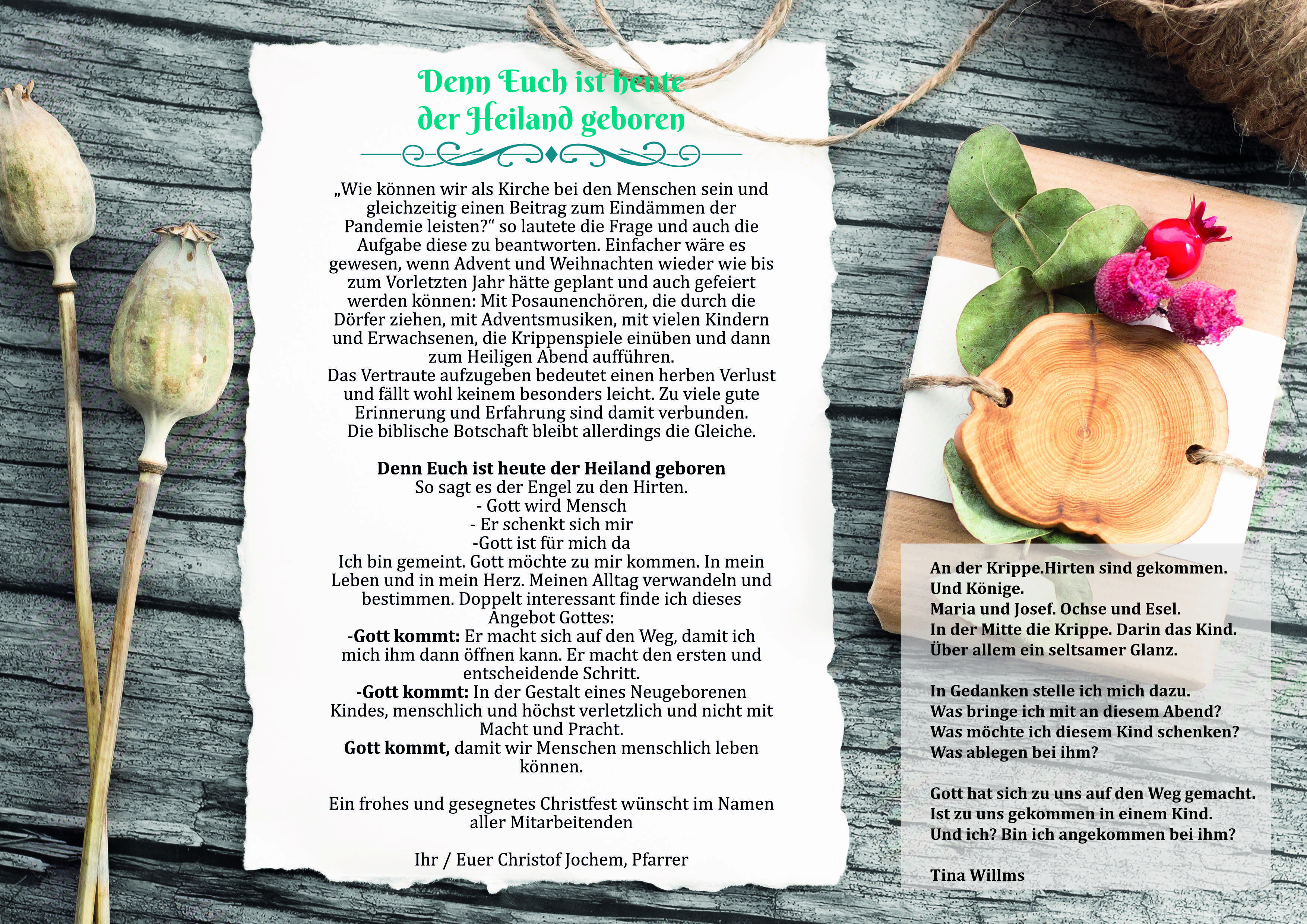 Da wir die Adventszeit und das Weihnachtenfest in diesem Jahr leider wieder nicht in vertrauter Art und Weise feiern können, hat Pfarrer Christof Jochem einen kleinen Weihnachtsbrief für Sie alle geschrieben.