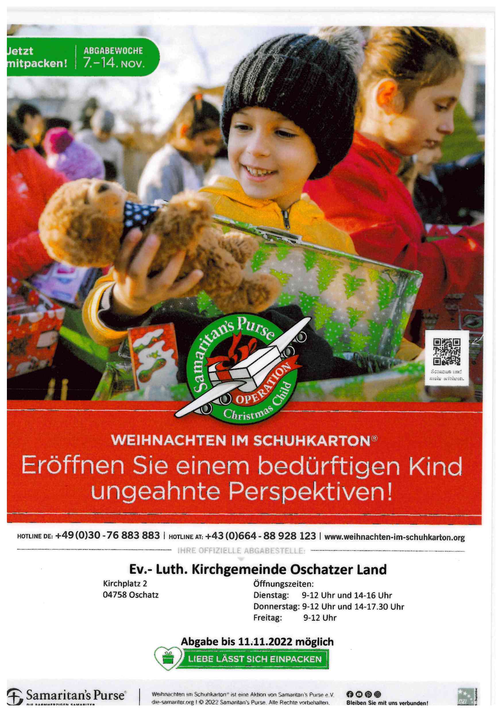 Bis zum 11.11.2022 kann der Karton dann im Pfarramt Oschatz (Kirchplatz 2) abgegeben werden.