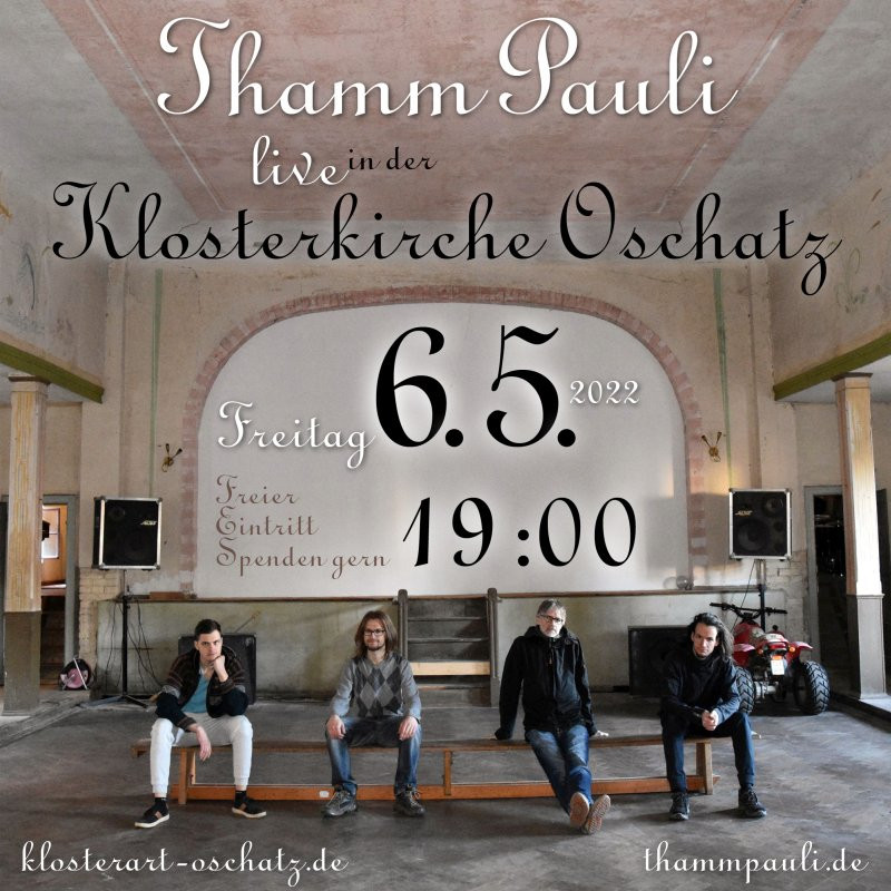 Nach viel, viel Zeit ohne Livemusik ist die Band richtig happy, als erste Gruppe nach pandemischer Abstinenz wieder das Kirchenschiff der Oschatzer Klosterkirche mit Klang zu erfüllen. Die Musik von THAMM PAULI kann man als eine Mischung aus Singer/Songwriting, Pop, Rock und Alternative beschreiben.