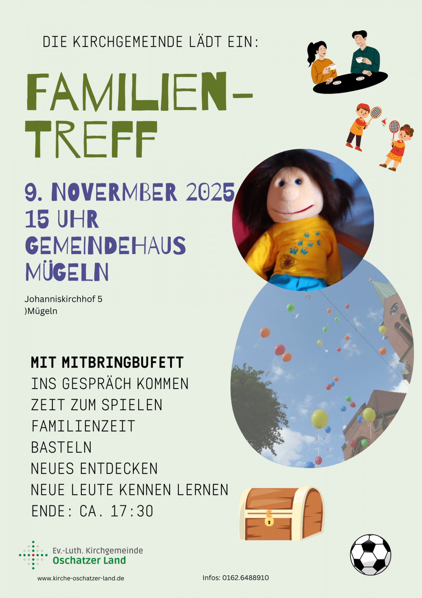 Die Kirchengemeinde lädt herzlich zum Familientreff ab 15 Uhr im Gemeindehaus Mügeln ein zum: